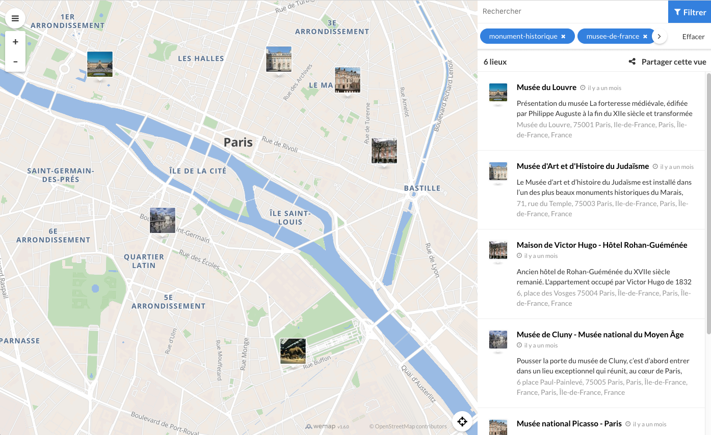 #/search?tags=monument-historique%2Cmusee-de-france@48.85155227592341,2.3515947508631143,14.746964595050471 - From SDK: